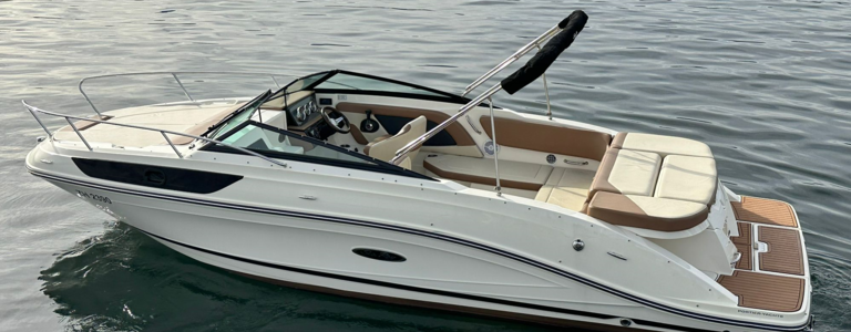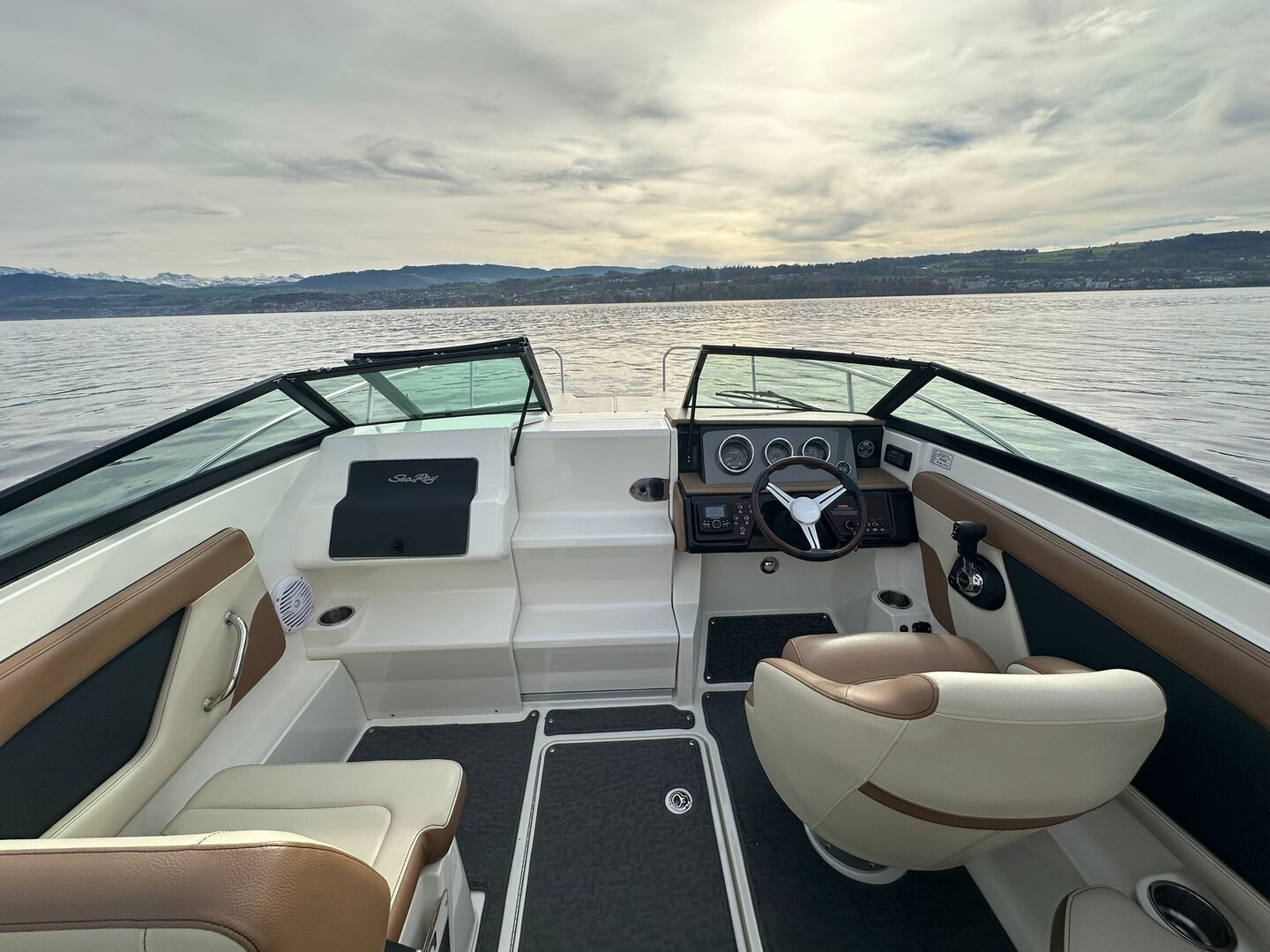 Diese Sea Ray Sun Sport 230 bietet alles, was man sich für entspannte Stunden oder sportliche Aktivitäten auf dem Wasser wünscht. Das großzügige Layout lädt zum Sonnen, Baden und Genießen ein – und die praktische Kabine macht das Boot auch für Übernachtungen oder als geschützten Rückzugsort ideal. Hier findet sich Platz zum Relaxen, Verstauen von Gepäck oder um sich unterwegs frisch zu machen – inklusive WC, die mehr Freiheit fernab des Hafens ermöglicht.